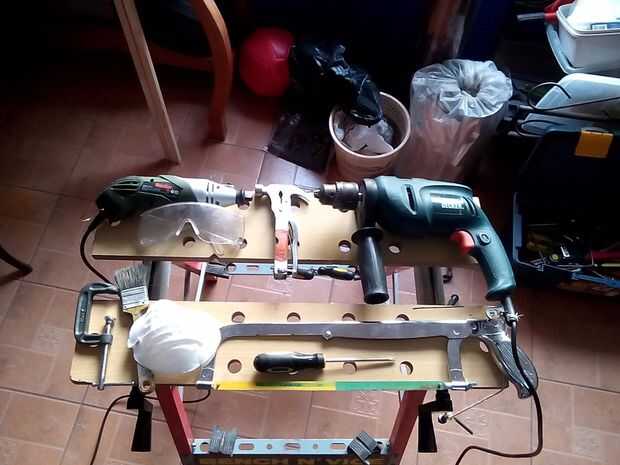 Todo estaba conectado con tornillos para madera y colafria, dándole mayor firmeza herramientas las herramientas que utilizamos son - Bauker multiusos lijado y pequeños cortes