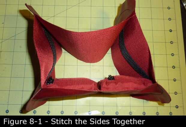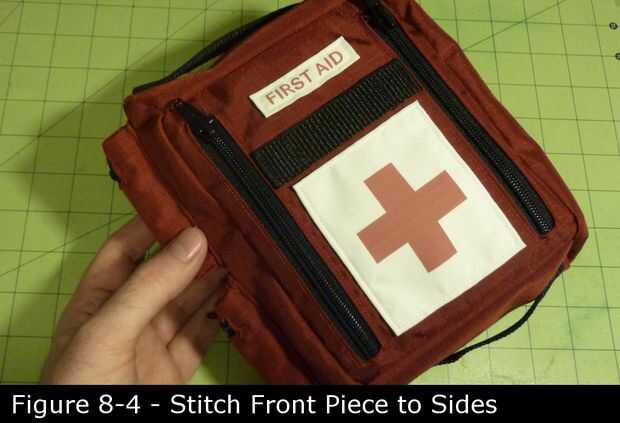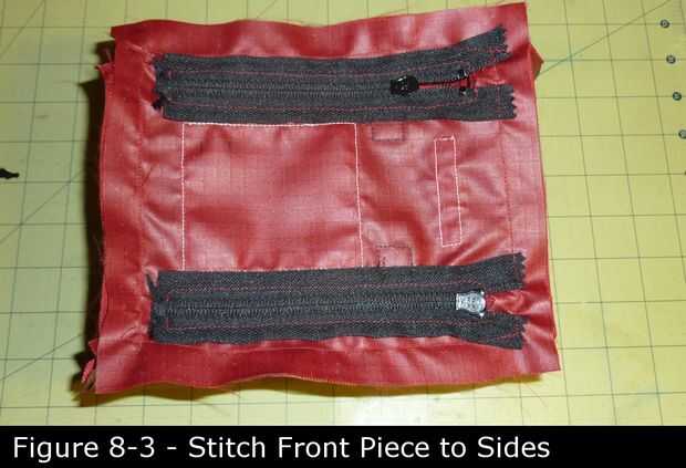 Fijar la pieza frontal en su lugar y coser una costura de 5/8" alrededor del borde de la figura 8-3. Para obtener la