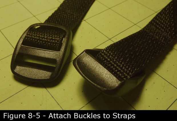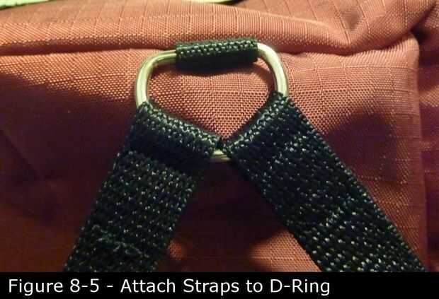 Lazo 1" de las dos correas restantes sobre el anillo en D y puntada hacia abajo figura 8-5.