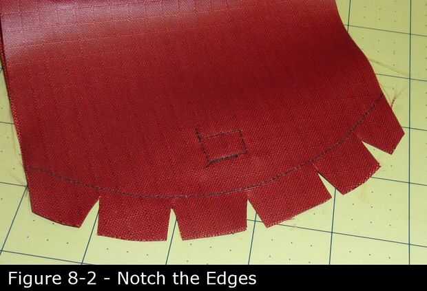 Las costuras de los márgenes como en la figura 8-2 para que la bolsa saldrá correctamente de la muesca.