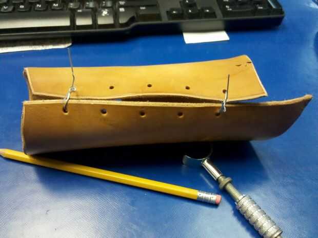 materialescorrea de cuero gruesa vieja o correascordón de cueroherramientasponche de cueropara hacer el objeto corte las correas de cuero en trozos y los bordes de las piezas en ánguloluego hice dos juegos de agujeros, uno abajo de la zona media alre