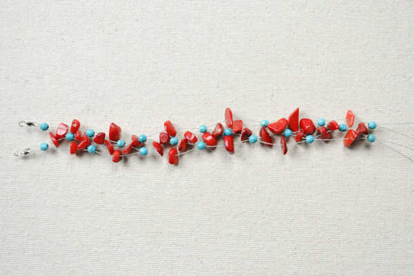 Cómo hacer un brazalete cruzado con Coral y turquesa perlas (4 / 6 paso)