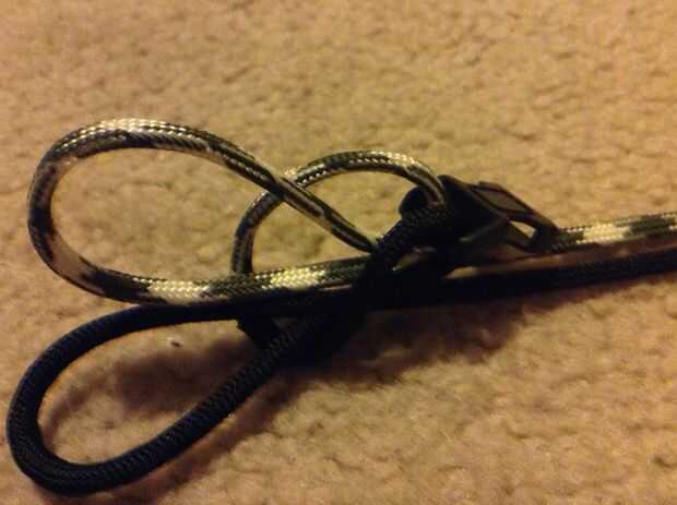 a continuación tire de la hebilla hasta el extremo de la cuerda y lazo como en la foto.