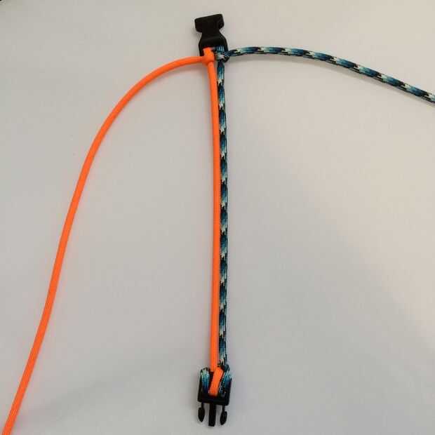 Doblar el paracord en dos, colocar a las hebillas y medir su brazalete de paracord en la muñeca de tamaño.