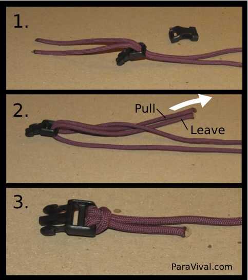 3. Ajuste las cuerdas para que una cuerda está colgando hacia fuera de cerca de 1 pulgada, y la otra es el resto de la cuerda como se muestra en la parte 3 del diagrama.