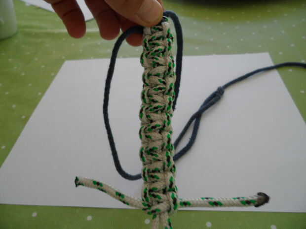 las siguientes son algunas sencillas instrucciones sobre la creación de un brazalete de paracord usando uno o dos colores diferentes de cable. Estas pulseras son usadas por la moda y también sirven en la industria al aire libre. Una vez que se desmon