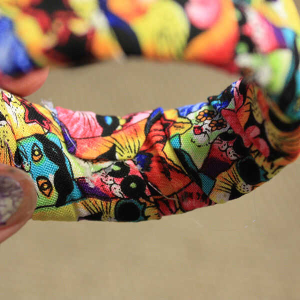 Lentamente enrolle la tira de tela alrededor del can/tube. Usted puede ajustar la tela para asegurarse de que ciertos patrones mostrar correctamente en el exterior. Para terminar, doblar sobre el borde (puede cortar la tira si sobra mucho) y pegado en el interior.