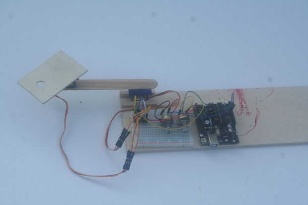 Este Instructables te mostrará cómo crear su propio brazo dibujo. El brazo de dibujo dibuja usando el agujero en la pieza más arriba de la madera como una escritura portacucharones. Este brazo dibujo funciona de entrada de los potenciómetros y ellos haciendo una lectura de servo. El brazo de dibujo tiene 2 DOF y cada DOF es controlado por un potenciómetro.
