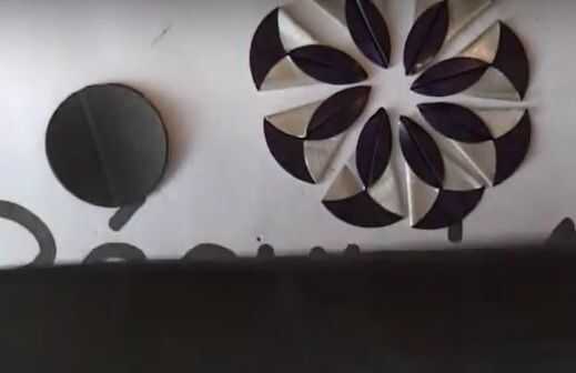 Doblar los círculos en 4 piezas. Utilice una pinza de punta plana para doblar dos lados como se muestra. De ahora en adelante doble en el centro otra vez para obtener pétalo de Dalia. Repita este paso 8 veces. Que cortar otro círculo, pero ahora de una pieza de tubo interno de la bicicleta.