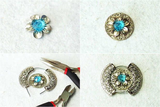 1 º pegar el colgante de cristal de corazón en la tapa de grano de flor de 18mm;