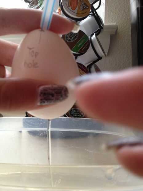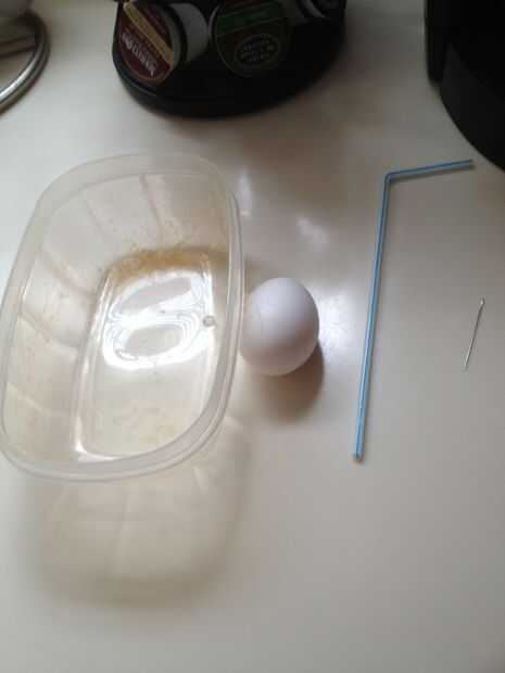 Que sopla un huevo es un paso muy importante. Para hacer esto se necesita un huevo, pajita, aguja/Chincheta, y un bowl.you poke agujeros en la parte superior e inferior del huevo y poner una pajita de beber en la parte superior y soplar la yema y la clara de huevo en el tazón de fuente (usted excepto la yema para cocinar).