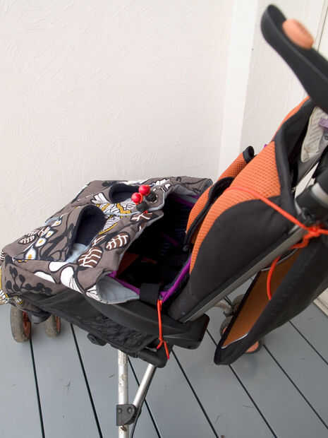 La caminata con la mitad terminado BuggyBag fue buena también para la posición calientes bolsillos en la parte superior de la BuggyBag. Se fabrican con material de manta de sobras.