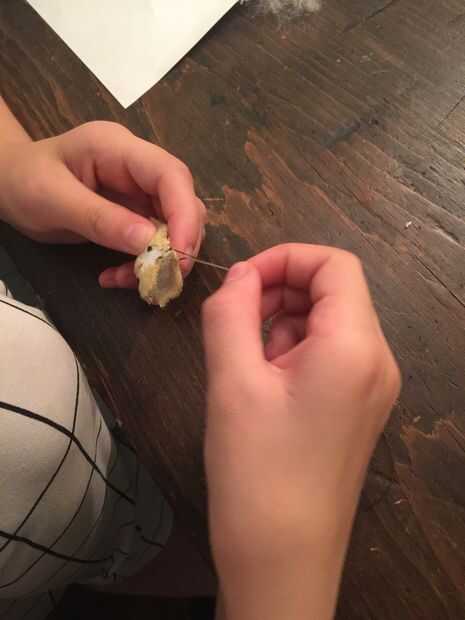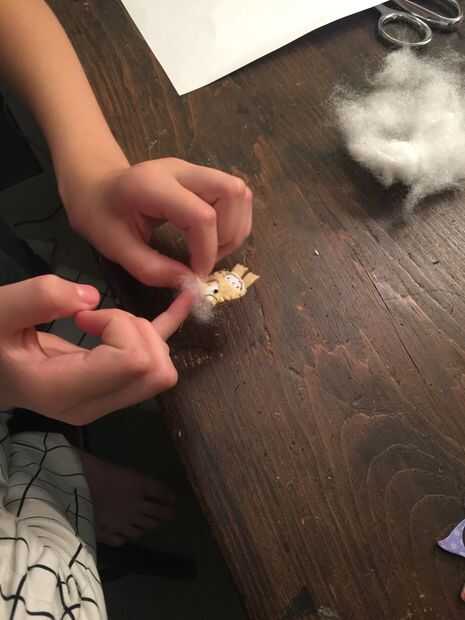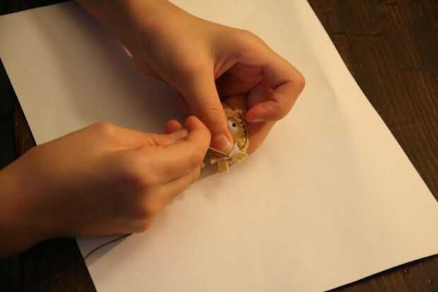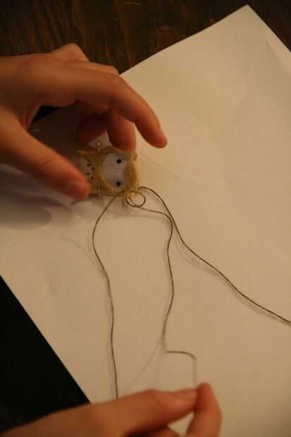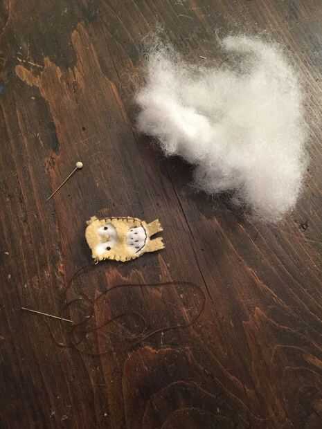 Salir el relleno, pero primero un pin. Perno de la tapa y capas medias en la parte superior de la lechuza, para que el relleno no se le fuera el buho donde no debería ser. Tomar mechones pequeños de relleno y adentro Ponga suavemente con el dedo meñique. Una vez que tanto el relleno como te gustaría, coser hacia arriba con una puntada de manta. Y....