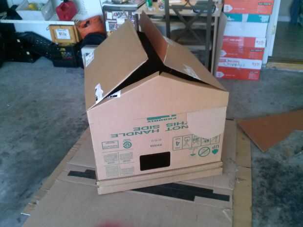 yo cortar el cuadro por la mitad. Anotó el interior donde se doble hacia abajo el interior y hace pequeñas lengüetas en la parte delantera y devolverlo para el pegamento sujetar.
