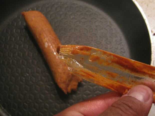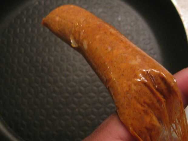 Chorizo no todos viene bastante esta bien empaquetado, pero todo bastante necesita quitarse de la caja. Algunas personas prefieren hacer esto después de que cocine unos minutos, pero prefiero exprimir de la carcasa en la sartén.
