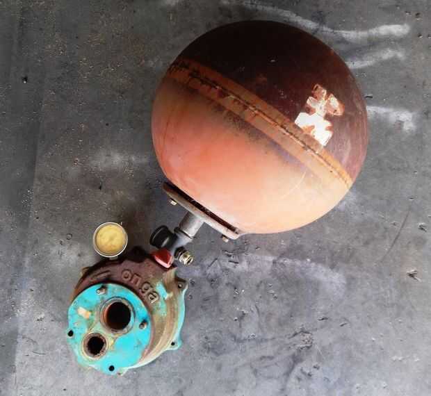 • Un antiguo depósito de presión esférico. Libre de un taller de reparación de la bomba.
