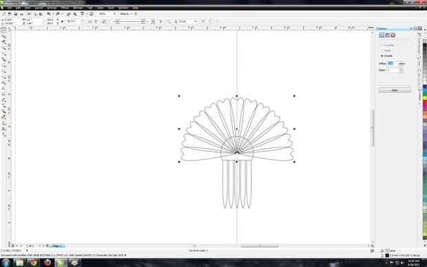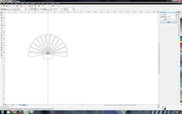 Hice un círculo como base para mi diseño. Luego he creado una unidad para el diseño y uso copia -> Pegar -> rotar las unidades alrededor del ventilador. Yo hice algo parecido para los dientes del peine: un diente, copiado y pegado y em mueve alrededor hasta que tuviera 5 más uniformemente distribuidas.