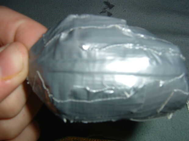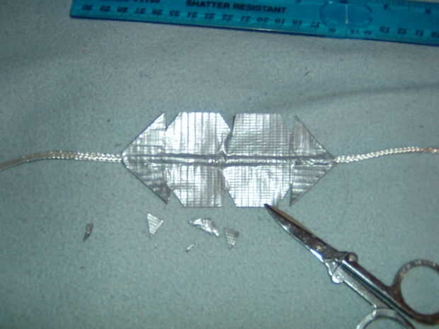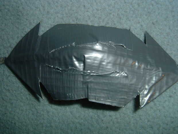 Este paso es curva la bolsa! La finalidad de este es por lo que la roca decir mientras su spinning esto. Cortar poco V, 3 a cada lado. (siga las fotos!) Doblar los bordes de encuentro de la V, luego añadir un trozo pequeño de cinta.