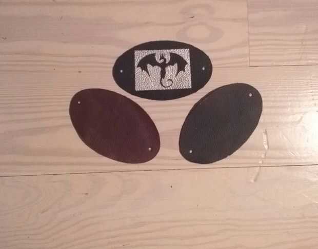Si con éxito cogió su vaca vecinos y cortar la piel de todo... jk, no lo hacen. Ahora necesitas trace la plantilla sobre la piel (Asegúrese de que tiene cuero duro, lo débil se rasgan y podría ser peligroso si se rompió durante el uso) y recortarlo, sacador de agujero también la plantilla para que pueda rastrear el agujero y golpear hacia fuera sobre la piel.