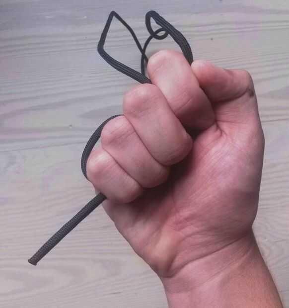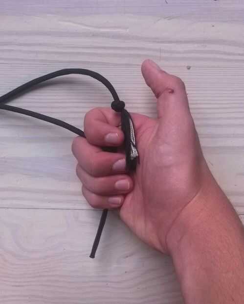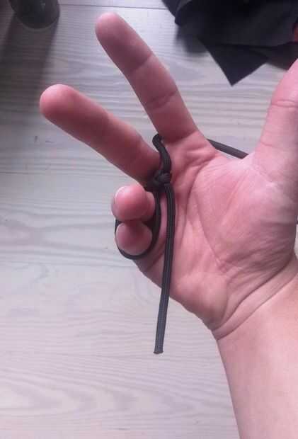 Ahora lo que tienes que hacer es ajustar el lazo de perfección donde (dominar la mano) el timbre pinky y el anillo de ajuste cómodamente dentro del bucle. Asegúrese de que todavía tienes extra sobresale al lado del nudo. ¿El propósito de esto? me explico... He visto que algunos hacer un bucle para el dedo, este encuentro no es tan cómoda como esta manera de celebrar el sling(see picture). El extra es para ajustar fácilmente para las manos más grandes / más pequeño si se va a dejar un amigo probar su Honda. Por último se obtiene más potencia porque el lazo no está tirando la vida de su dedo medio.
