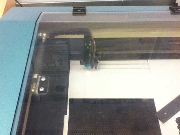 Enviar el diseño al Laser de la CAM, con la configuración adecuada para cortar acrílico y tarjeta.