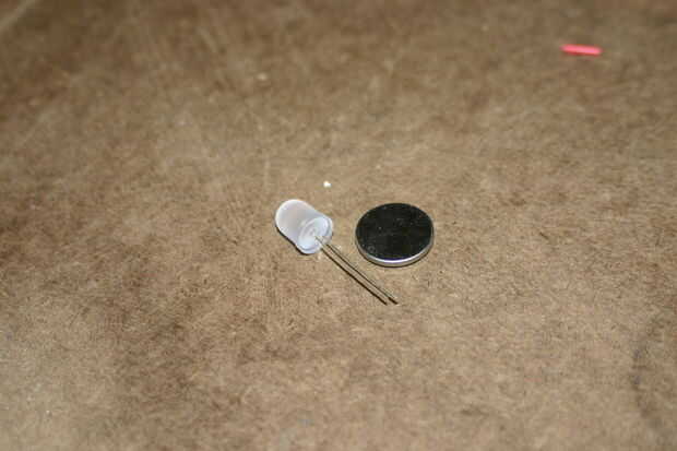 LED que utiliza 10mm difusa LED blanco. 15-50 céntimos. Puede tomar un LED prácticamente cualquier dispositivo electrónico viejos o comprarlos en línea. Shack de radio les vende por un brazo y una pierna.
