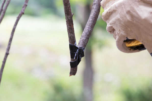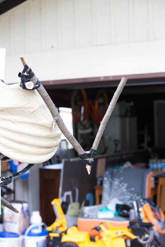 Después de la poda selectiva de algunos de mis árboles de ramas muertas, revisé mis opciones, algunas decisiones sobre la posición de los brazos y sistema de amarre al torso con mi buen viejo amigo cinta.