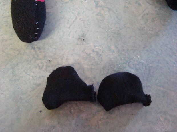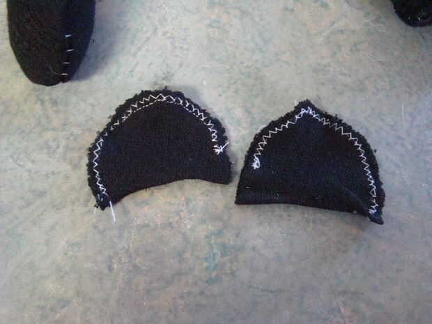 a continuación hacemos las orejas.  Puntada invisible la abertura pequeña en el oído cerrado.