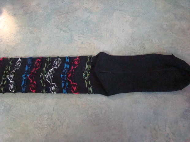 Primera vez calcetines, adentro hacia fuera.  Pone calcetines dentro hacia fuera, hacia fuera en la superficie de trabajo.  Tiene uno con el talón en el centro y plegar hacia la abertura del calcetin.  El otro con el talón doblado hacia fuera (como una media tradicional de la Navidad).