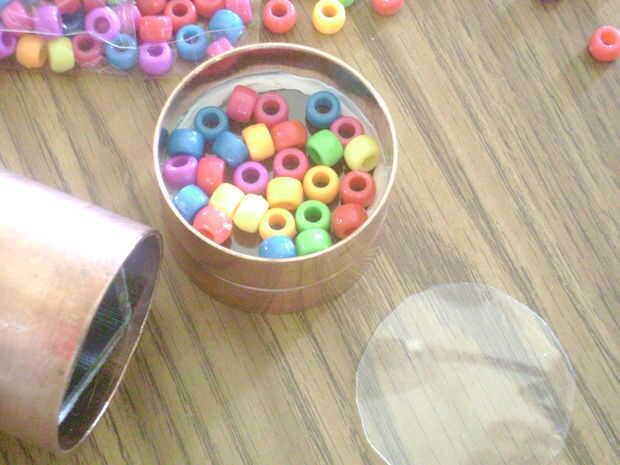 La masilla la otra pieza de plástico en el acoplamiento, así que los granos se intercalan entre el plástico, pero aún pueden moverse. Sacuda suavemente la tapa para asegurarse de que los granos no son calafatear a los lados de la tapa (Figura 4).