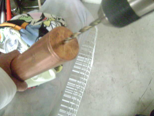 Coloque el ocular en un pedazo de chatarra tubo *** (Foto 2) y perfore con una broca de 1/2 pulgada (cuadro 3). Si el conjunto es demasiado pequeño, use una broca más grande. Quitar la tapa del extremo del tubo y la arena a los bordes del agujero nuevo; para asegurarse de que fragmentos pequeños no están en él.