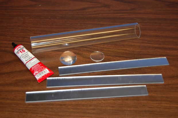 1 -tubo acrílico transparente 10" largo con 1 1/4" diámetro interior