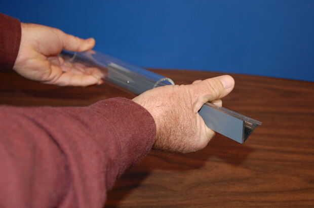 La forma de los espejos en un triángulo (el lado brillante en) y deslice dentro del tubo. Si el ajuste es muy apretado, arena los bordes exteriores hasta que sólo la cuña y no se mueven. Asegúrate de limpiarlos en primer lugar, porque si no puede volver hacia fuera, nunca podrá limpiarlos