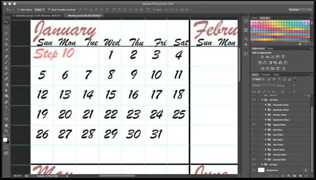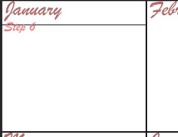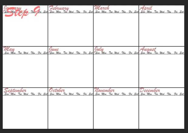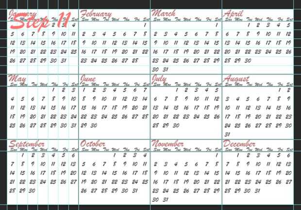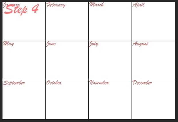 2. una vez que ha creado guías del proyecto debería ver 12 cajas. Cada uno representa un mes del año. En el primer cuadro verás cajas más pequeñas, cada una de ellas son los días de los meses.