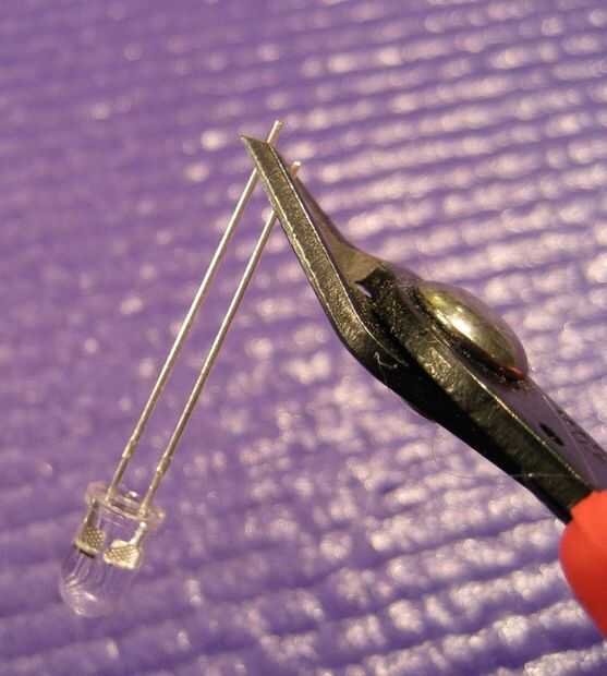 Si tienes problemas para meter los plomos a través de, o parecen doblar muy fácilmente, usted puede hacerlos más agudo con un alicate por recorte las puntas a un ángulo de 45 grados. Es importante mantener una diferencia de longitudes, por lo que todavía puede decir que uno es el plomo largo, o (+) en el siguiente paso.