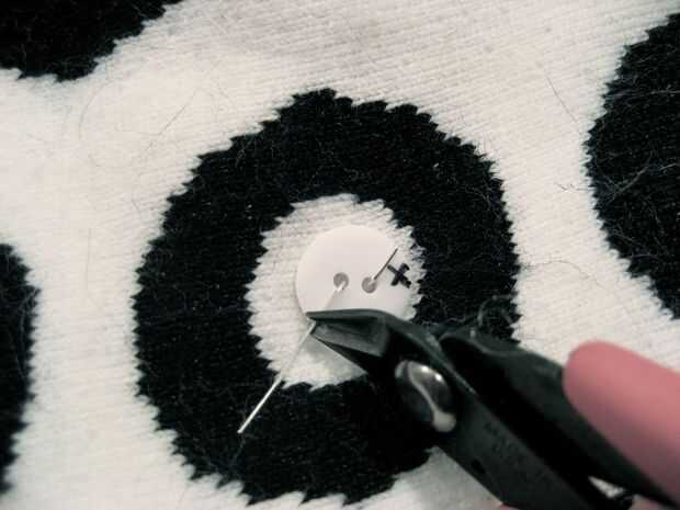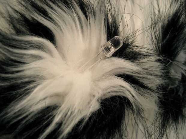 Después de que las luces están aseguradas con botones, y es marcada la polaridad, recorte las puntas de manera que se extienden casi a los bordes del botón. Repita este proceso con todas las luces.