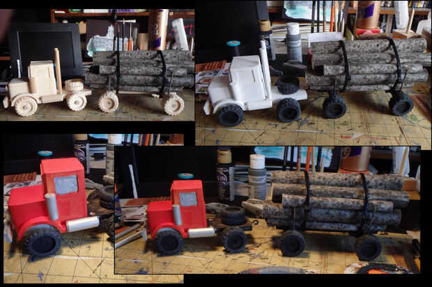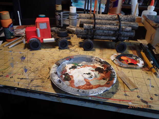 Pinturas de acrílico se utilizan para completar el proyecto. Como se muestra, decidí usar una pintura de cuerpo naranja y rojo y por supuesto los neumáticos son negro/gris. Acentos de plata se utiliza en las pilas, filtro de aire, tanque de gas y parte de los parachoques. Después de todo la pintura se ha completado, y varias características dibujados con una pluma de tinta, el cuerpo está protegido con unas cuantas capas de barniz acrílico.