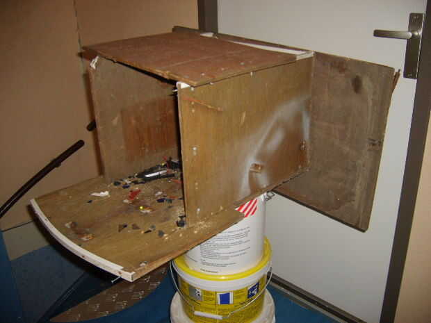 esta es la caja de madera utilizará. la placa en la parte posterior es para detener los pernos de la ballesta si has echo y la placa en la parte frontal de la caja es para alcanzar las metas.