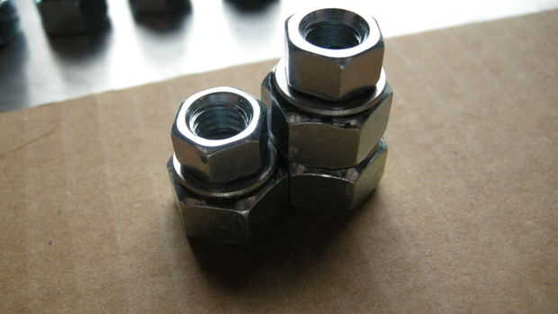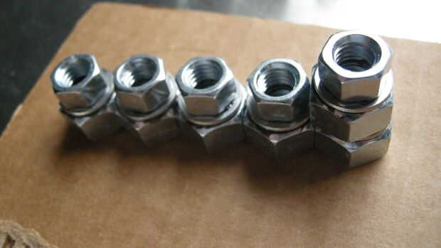 Colocar la hoja de cartón para proteger su mesa del expoxy. Agregue algunos epoxy en un lado de la tuerca de 1/2" y una al lado de la siguiente. Asegúrese de que hay cuatro tazas a cada lado de la altura.