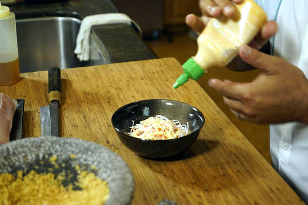 Paso 2: Se tritura el cangrejo y añadir las Spicy Mayo