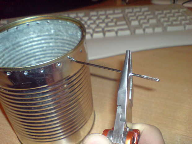 usar la multiherramienta y hacer algunos agujeros en la lata