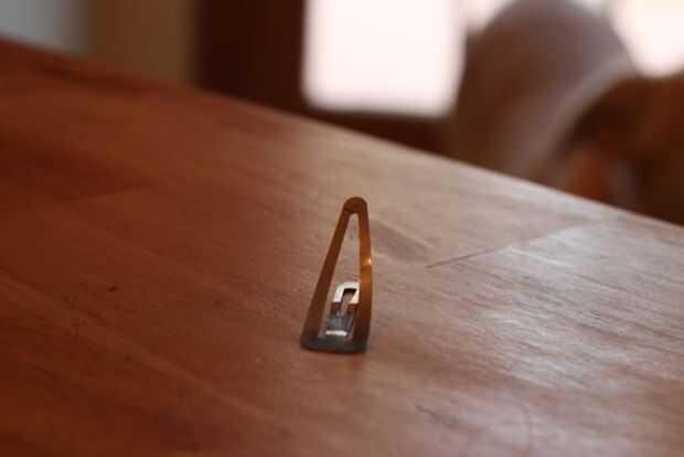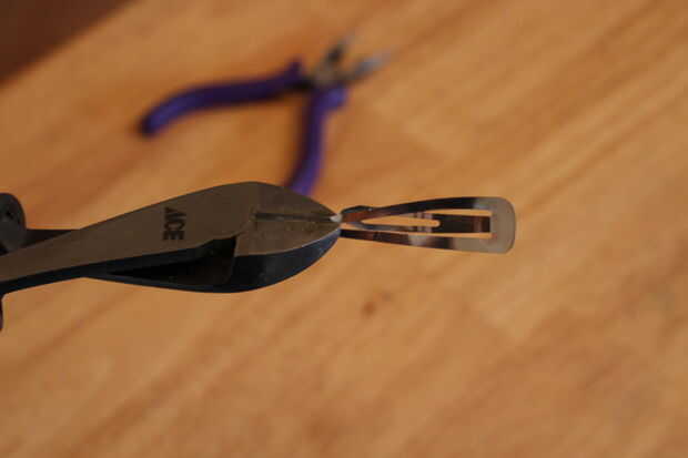 el paso 1 y peor. corte con cuidado la parte delantera de la pinza por la mitad.