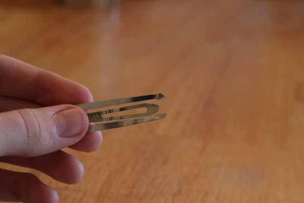 cuando el corte hecho el clip es debería tener este aspecto. pinzas de hacen estos pasos mucho más fácil que con los dedos!