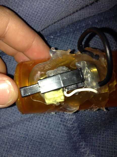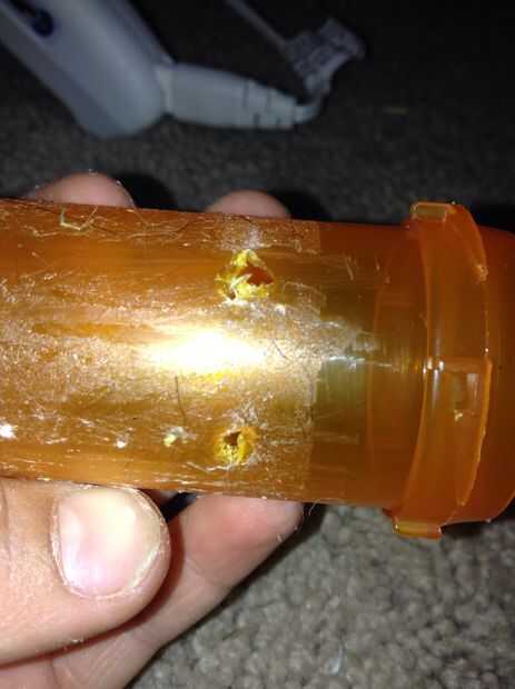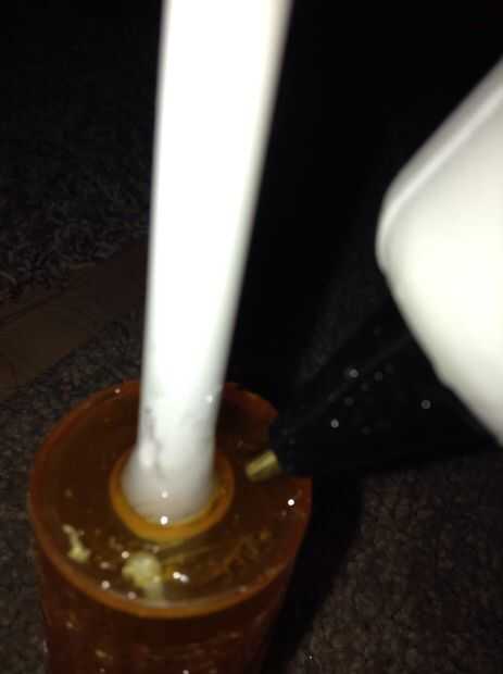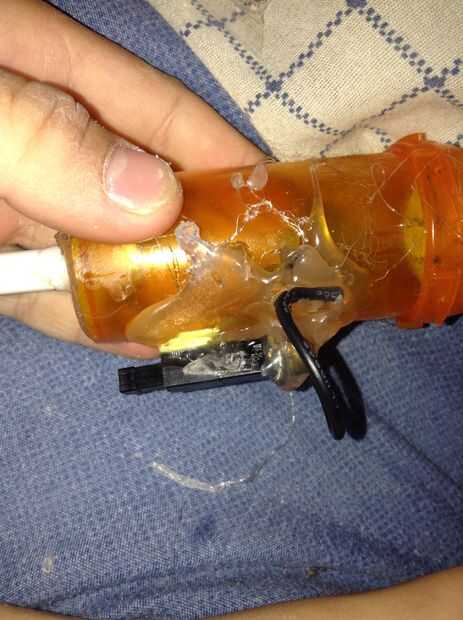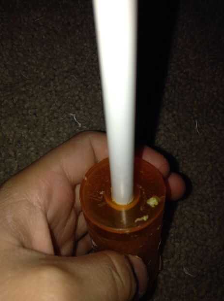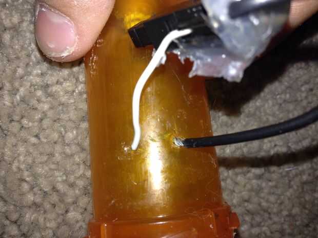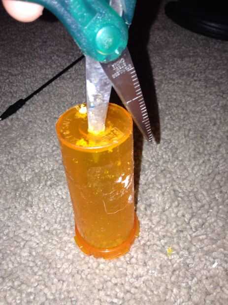 A continuación tome las tijeras otra vez y poke 2 agujeros en el lado de la botella bastante cerca pero no muy cerca es donde van los cables de bujías eléctrico piezoeléctrico