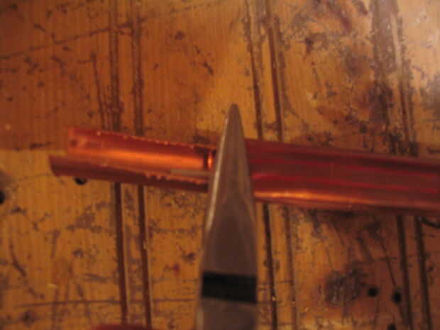 Utilice las pinzas para aplastar el tubo en la parte de corte de 1/2. (no completamente)