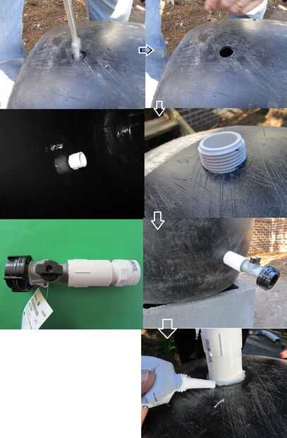 -Empuje la parte roscada del adaptador masculino roscado a través del orificio perforado desde el interior del cañón