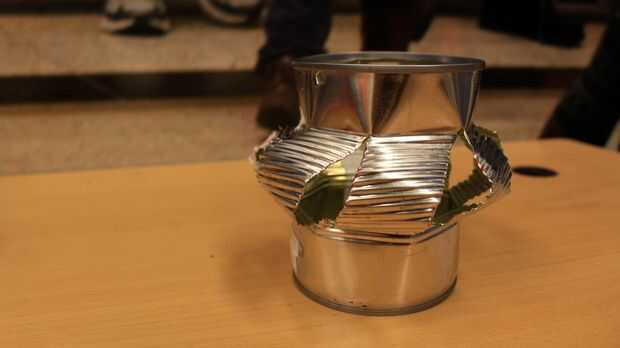 Con su lata cortado a intervalos regulares, puede ahora comprimir verticalmente la lata y doblar la parte acanalada para crear una superficie curva. Si tu fuerte no basta con presionar sobre el poder, usted martilla los bordes suavemente mientras empuja los lados de la lata hacia fuera. Utilizar la pinza o los dedos para igualar las curvas pero ten cuidado fuera de los bordes afilados.