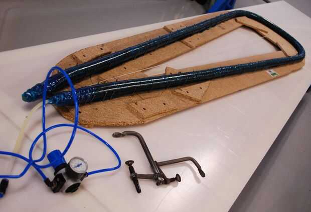 Ahora el vidrio pre-impregnado (que, si fueras suficientemente rápido aún no es curado), es forzado en el interior del tubo exterior y permanece en esta forma una vez que la resina se cura.