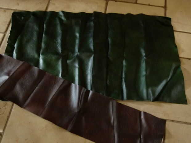 Cuero o imitación cuero, marrón y verde (yo usé las cosas imitación).