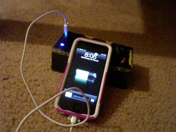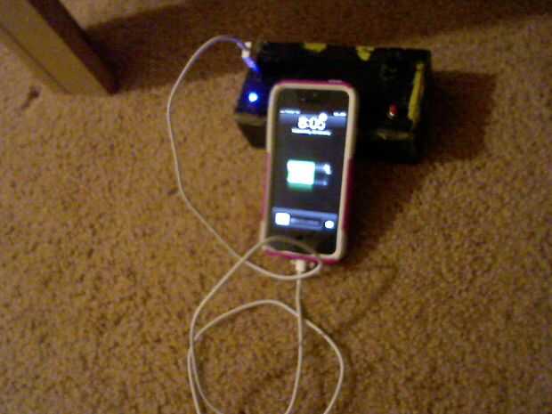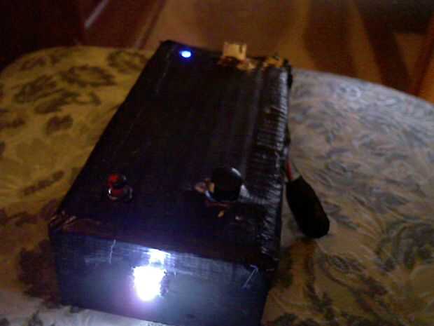 materiales: 2 diodos, 2 brillantes de led, 1 pequeña azul, 1 verde led, 3 conector de la batería, 4 2300 mili amperios doble aa las baterías, soldador, soldadura, cables, un recipiente, hub usb hembra, 2 100 k resistor, resistencia de 2 330 ohmios, 1 scr, 4 800 pilas aa de Mili amperios, pintura, pincel.
